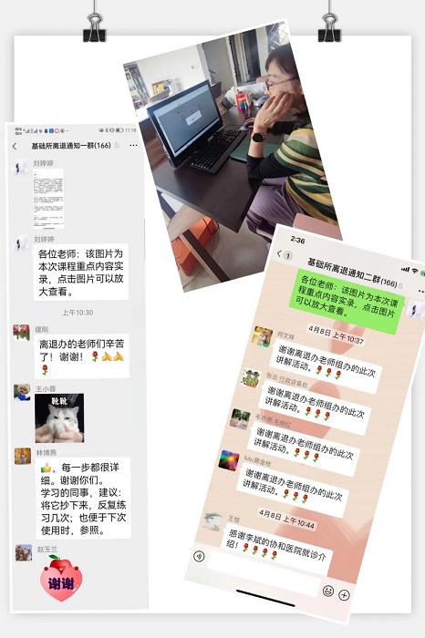 随着网络技术高速发展,我们的医、食、住、行被一部方寸大小的智能手机高效安排,为帮助老年人在疫情常态化下便利生活,持续深入开展党史学习教育“我为群众办实事”,基础所离退办特别开展了“手把手”教老同志用手机常用软件系列活动,第一讲从老同志们最关切、最需要解决的就医入手。活动前期离退办利用微信等平台普及健康宝扫码、微信接龙、协和APP下载和腾讯会议的使用,并于2022年4月8日、15日、22日,线上为基础所和院校离退休老同志分批进行相关培训,院校党委副书记王云峰,离退休工作处处长李春宇,副处长李霞及院所近百余名老同志参加。